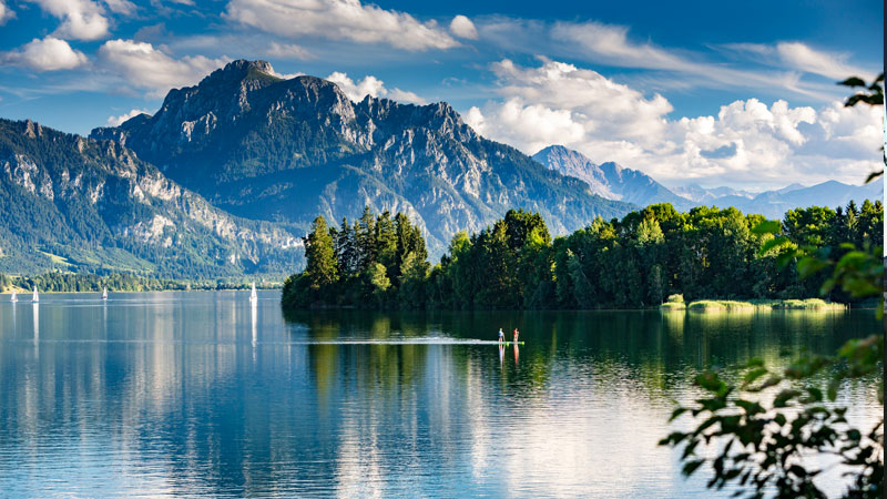 Tysklands till ytan största delstat Bayern har flera olika ansikten att visa upp. Vi väljer den allra sydligaste delen runt Ammergauer-alperna. Dessa sträcker sig mellan floderna Lech och Loisach och gränsar till Tyrolen. Den sköna byn Ettal som bas utforskar vi landskapet omkring samt området runt OS-staden Garmisch-Partenkirchen. Bakgrundskulissen bildas av bergskedjan Wetterstein med landets högsta topp Zugspitze.